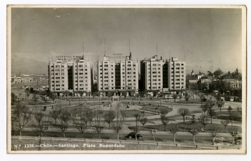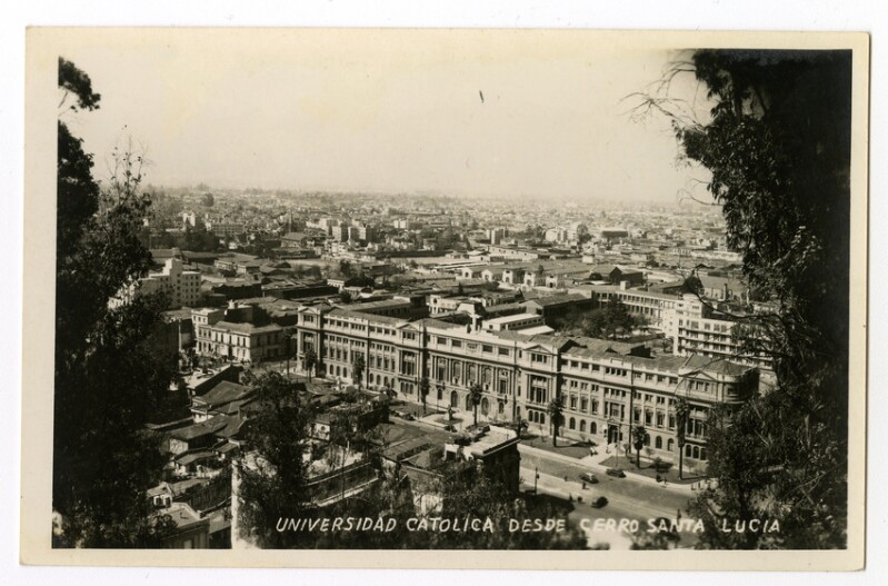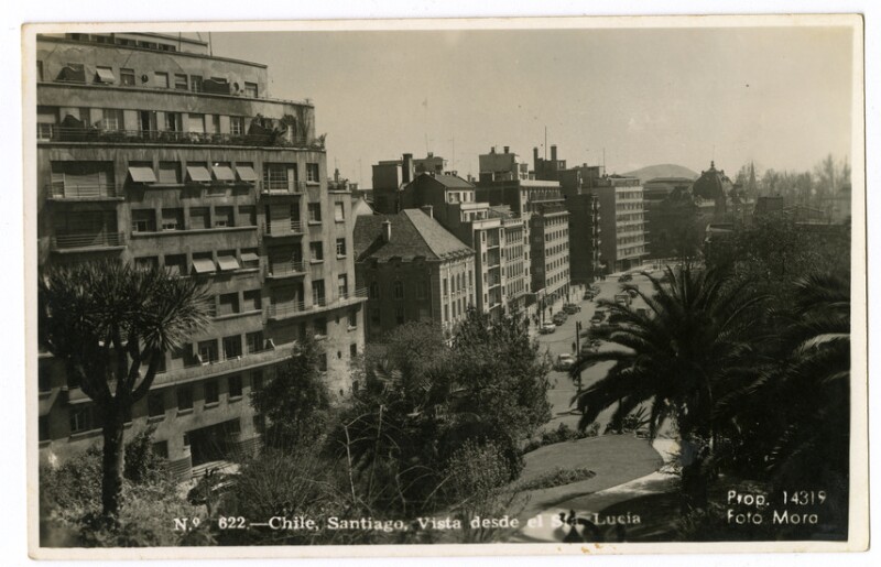 Arquitectura del paisaje - Tarjetas postales - Edificios históricos - Biblioteca Nacional (Chile) - Cerro Santa Lucía (Santiago, Chile) - Vicuña Mackenna, Benjamín - Arquitectura - Fotografías - Avenida Libertador Bernardo O'Higgins (Santiago, Chile) - Cines - Teatro Santa Lucía (Santiago, Chile) - Edificios, estructuras, etc - Santiago (Chile : Ciudad) - Decoración y ornamentación - Historia - Arquitectura de teatros