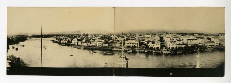 Antofagasta (Chile), Bancos é Intendencia : [Banco Español, a un costado de la Plaza Colón, vereda norte; Edificio del Banco Anglo Sudamericano, y la Intendencia entre otros edificios, vereda sur; al fondo, la Cordillera de la Costa] [fotografía].