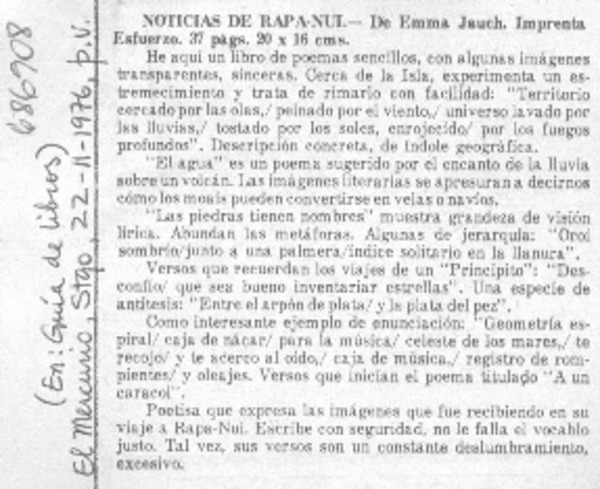 Autoras chilenas - Jauch, Emma - Noticias de Rapa Nui