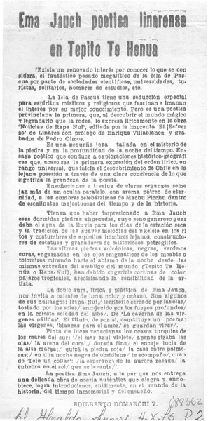 Emma Jauch poetisa linarense en Tepito te henua [artículo] Edilverto Domarchi V.