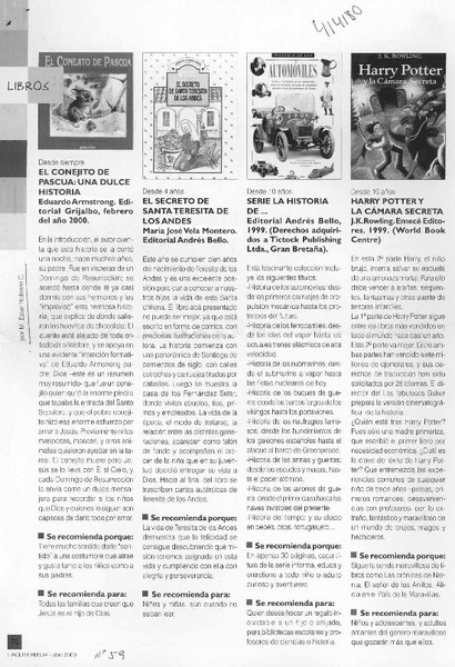 Autores chilenos - Autores españoles - Carta del más allá - Armstrong, Eduardo - Conejito de pascua, una dulce historia - Luca de Tena, Torcuato - Soria Carlos - Elogio de la intolerancia - Vela Montero, María José - Secreto de Santa Teresita de Los Andes