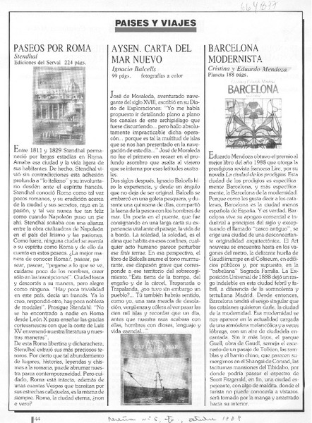 Autores chilenos - Autores españoles - Mendoza, Eduardo - Balcells, Ignacio - Aysén. Carta del mar nuevo - Mendoza, Cristina - Barcelona modernista