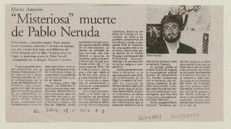 "Misteriosa" muerte de Pablo Neruda [artículo].