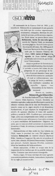 Autores chilenos - Autores argentinos - Aguirre, Isidora - Vial Correa, Gonzalo - Vitale, Luis - Gallardo, Juanita - Bravo Valdivieso, Fernando - Balmaceda y la guerra civil - Bulnes Serrano, Francisco - Linares, José Agustín - Último Clarín - Balmaceda - Pinto Lagarrigue, Fernando - Dialogo de fin de siglo - Alvarez Martínez, Gabriel - Balmaceda, sus ultimos dias - Balmaceda y los gobiernos seudo-palrlamentarios