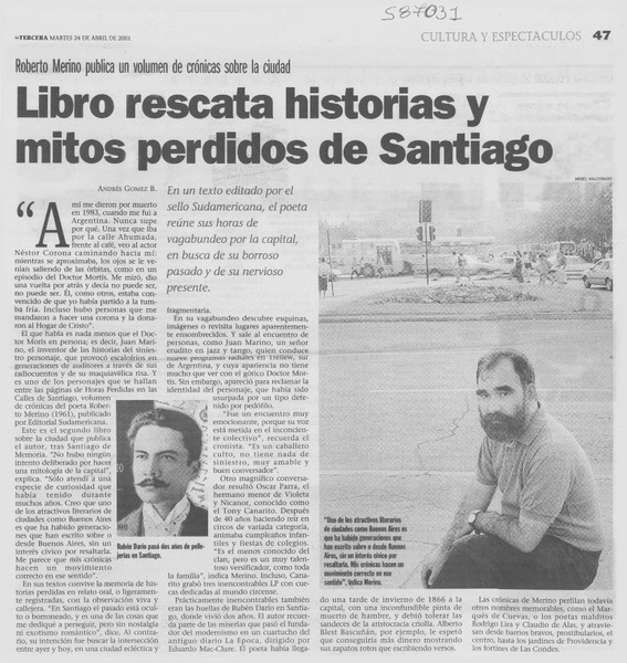 Libro rescata historias y mitos perdidos de Santiago [artículo] Andrés Gómez B.