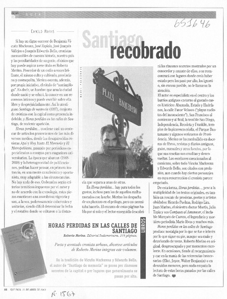 Horas perdidas en las calles de Santiago [artículo] Rodrigo Pinto