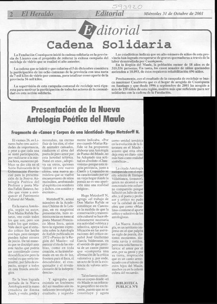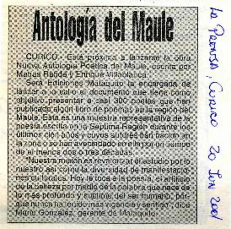 "Nueva antología poética del Maule" será presentada el viernes 13 [artículo]