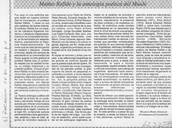 Matías Rafide y la antología poética del Maule [artículo] Mauricio Ostria González