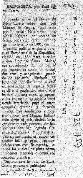 Autores chilenos - Balmaceda - Silva Castro, Raúl