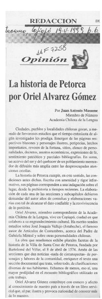 La historia de Petorca por Oriel Alvarez Gómez [artículo] Juan Antonio Massone.