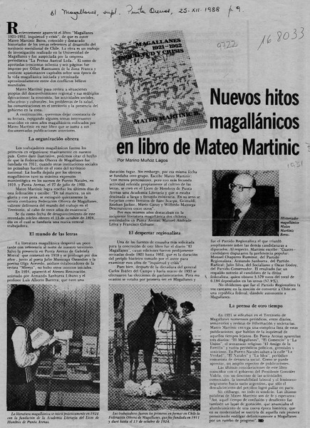 El libro "Magallanes" de Mateo Martinic [artículo] Angel Lira.
