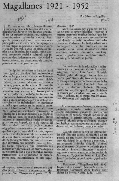 Magallanes 1921-1952 [artículo] Silvestre Fugellie.