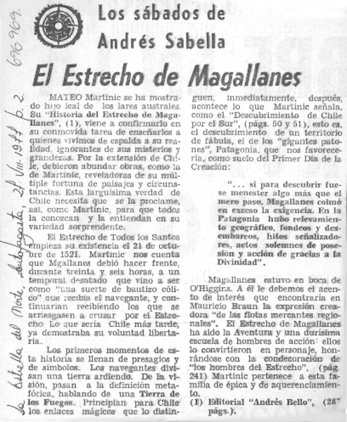 El Estrecho de Magallanes [artículo] Andrés Sabella.