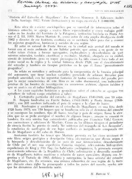 Historia del Estrecho de Magallanes [artículo] H. Barrera V.