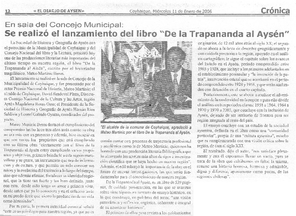 Se realizó el lanzamiento del libro "De la Trapananda al Aysén" [artículo]