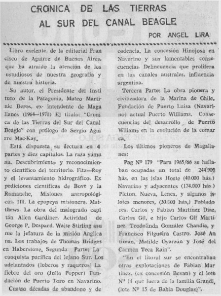 Crónica de las tierras al sur del Canal Beagle [artículo] Angel Lira.