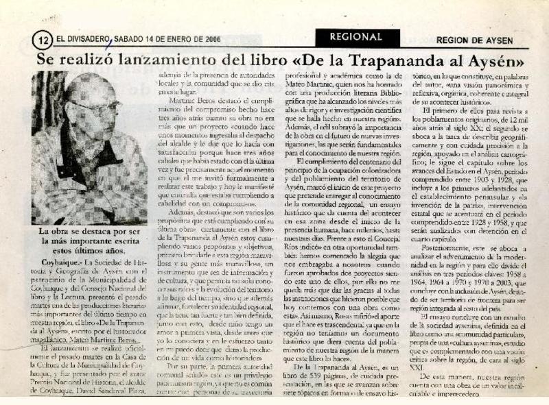 Interesante obra de Mateo Martinic está ya en circulación. [artículo]