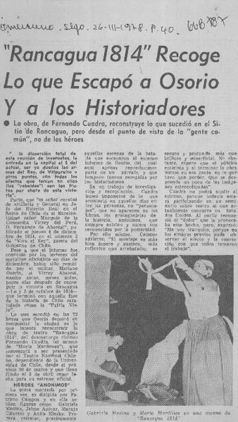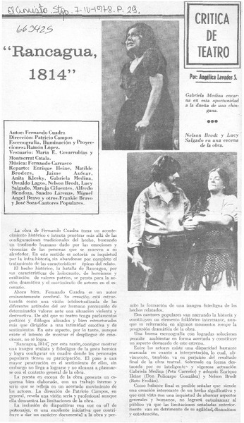 "Rancagua 1814", un hermoso homenaje teatral de F. Cuadra [artículo] Yolanda Montecinos.