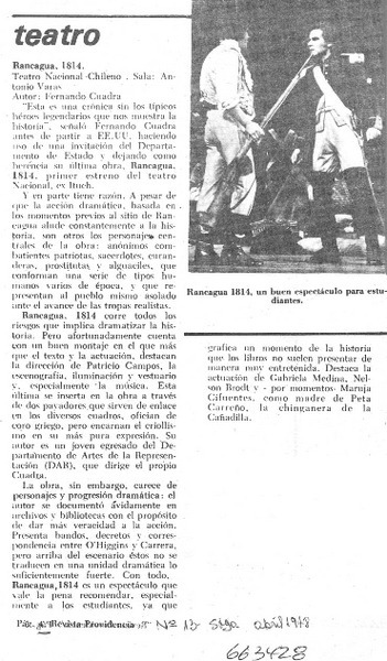 Rancagua 1814" la obra [artículo] Wilfredo Mayorga.
