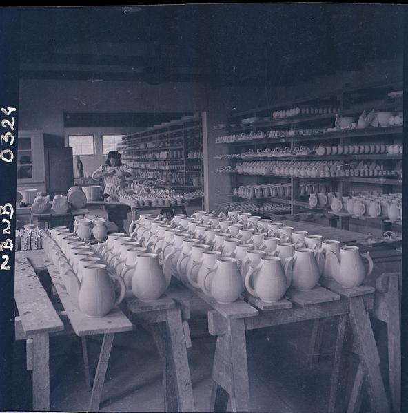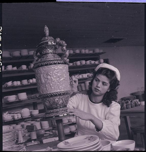 [Etapa de producción; niña encargada de la decoración de objetos de cerámica. Fábrica de Cerámica de Lota, sección decorado] [fotografía] Ignacio Hochhäusler.