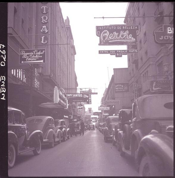 Austríacos - Santiago (Chile : Ciudad) - Cine Central (Chile) - Automóviles antiguos y clásicos - Huérfanos (Santiago, Chile : Calles) - Fotógrafos - Comercio - Calles - Santiago (Chile) - Fotografías - Historia