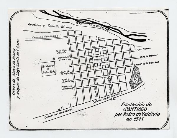 [Plano esquemático, en el tiempo de la] Fundación de Santiago por Pedro de Valdivia en 1541 [fotografía].