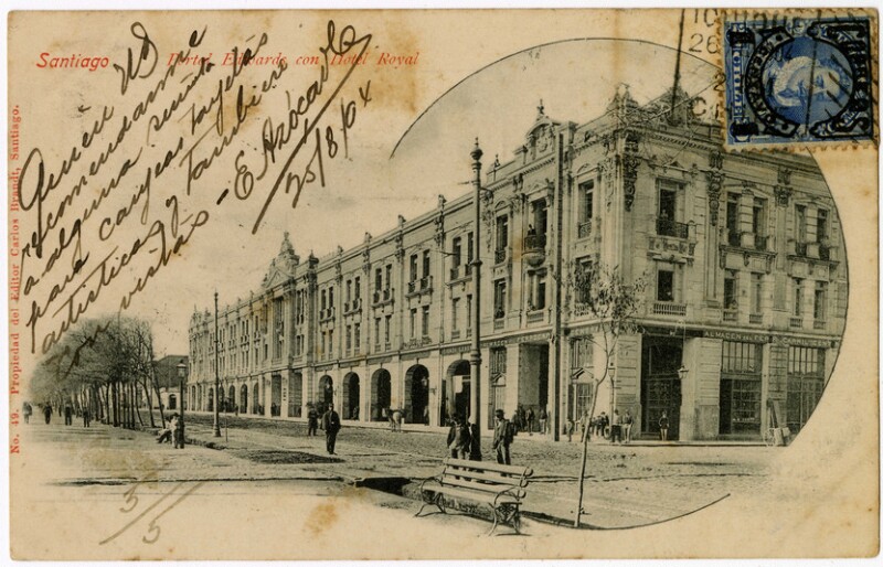 Historia - Santos, Daltro - Edificios, estructuras, etc - Santiago (Chile : Ciudad) - Arquitecto - Tarjetas postales - Monumentos - Calles - Santiago (Chile) - Arquitectura - Fotografías - Diseños y planos - Azócar, Eliseo - Hotel Royal (Santiago, Chile) - Portal Edwards (Santiago, Chile) - 1855-1897 - Mac-Clure Ossandón, María Luisa - Barroilhet Budge, Carlos - Behwr, José