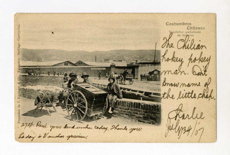Costumbres Chilenas. Vendedor ambulante de helados [fotografía] C. Kirsinger & Cia.