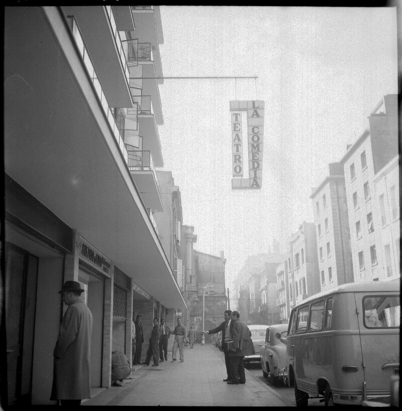 [Edificio : Cartel que anuncia "Teatro La Comedia"] [fotografía] Hans Ehrmann,