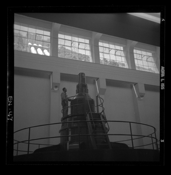 [Vista interior, uno de los generadores de la Central Hidroeléctrica "Sauzal"] [fotografía] Luis Ladrón de Guevara.