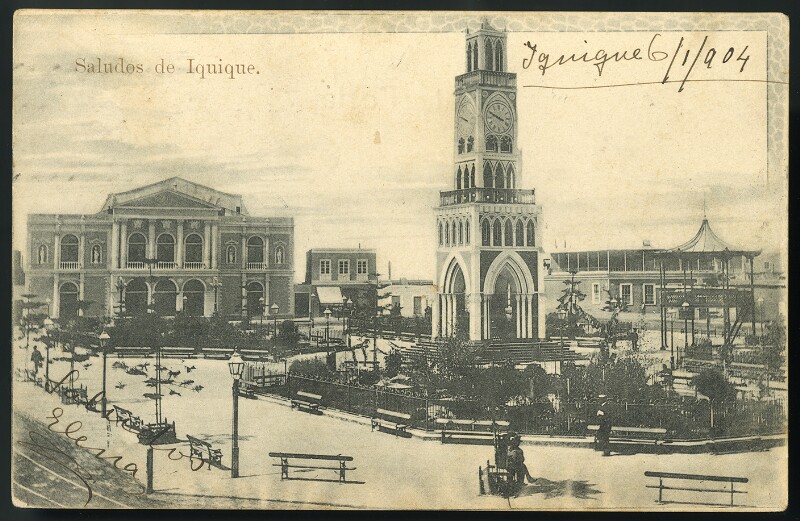 Historia - Fotografías - Fotografía - Iquique (Chile) - Edificios históricos - Tarjetas postales - Arquitectura del paisaje - Arquitectura renacentista - Plaza Arturo Prat (Iquique, Chile) - Oróstegui, Laura - Teatro Municipal (Iquique Chile) - kioskos - Chagres (Catemu, Chile) - Elena