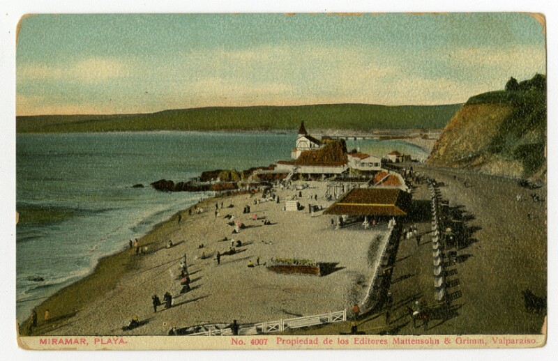 Playa Miramar (Viña del Mar, Chile) - Grimm, Juan - Balnearios costeros - Tarjetas postales - Residencias - Viña del Mar (Chile) - Fotografía - Arquitectura - Fotografías - Castillo Wülff (Viña del Mar, Chile) - Mattensohn, Guillermo - Wülff Mowle, Gustavo Adolfo - Restaurant Schaub (Viña del Mar, Chile) - Historia