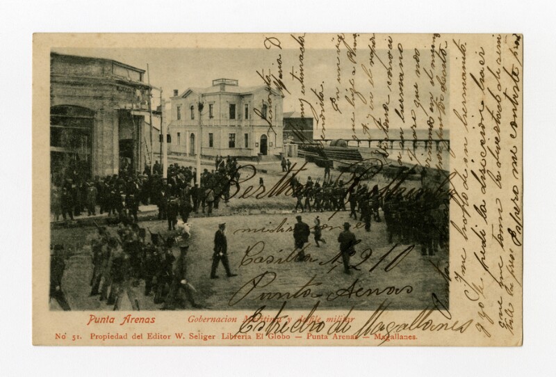 Punta Arenas-Magallanes Gobernacion Maritima y desfile militar [fotografía] W. Seliger, Libreria "El Globo".