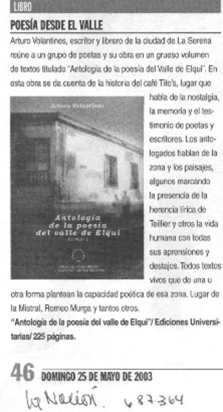 Autores chilenos - Volantines, Arturo - Antología de la poesía del Valle de Elqui