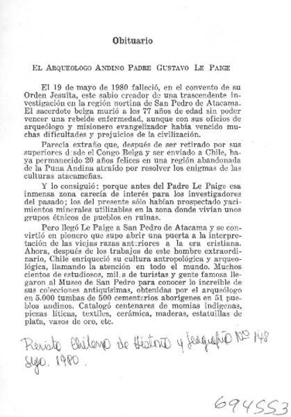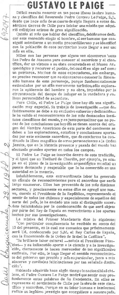 El padre Gustavo Le Paige. [artículo] Roberto Lehnert.
