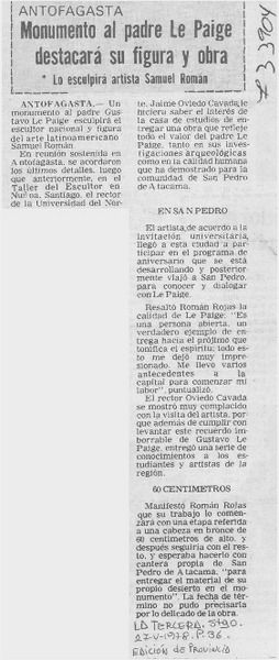 Monumento al padre Le Paige destacará su figura y obra. [artículo]