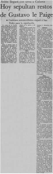 Hoy sepultan restos de Gustavo le Paige. [artículo]