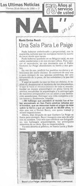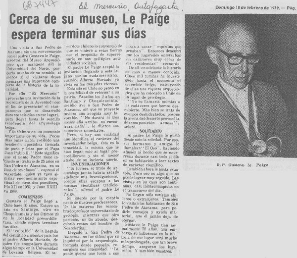 Museo histórico reconoce labor del padre Le Paige. [artículo]