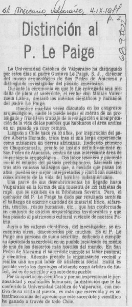 Distinción recibió R. P. Gustavo Le Paige. [artículo]
