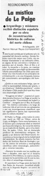 El Padre Le Paige [artículo] Héctor Pumarino Soto.