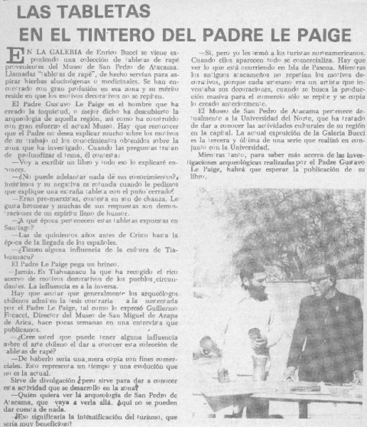 Las tabletas en el tintero del Padre Le Paige. [artículo]
