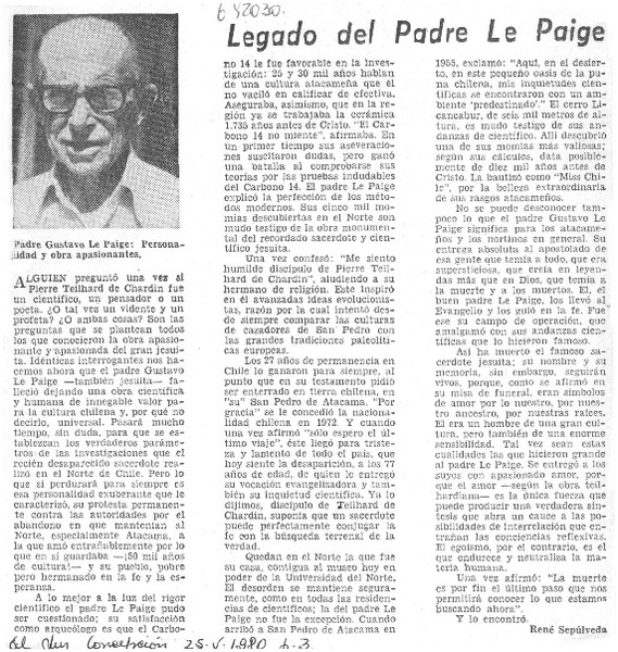 Legado del Padre Le Paige [artículo] René Sepúlveda.