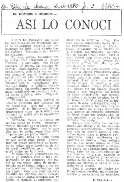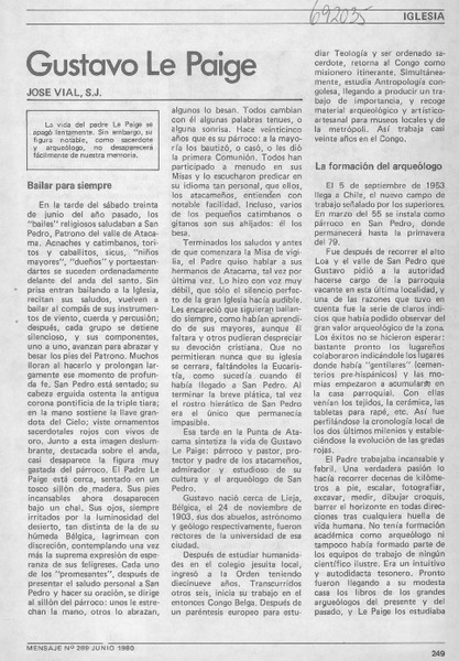 Padre Gustavo Le Paige, veinte años en San Pedro [artículo] Héctor Pumarino Soto.