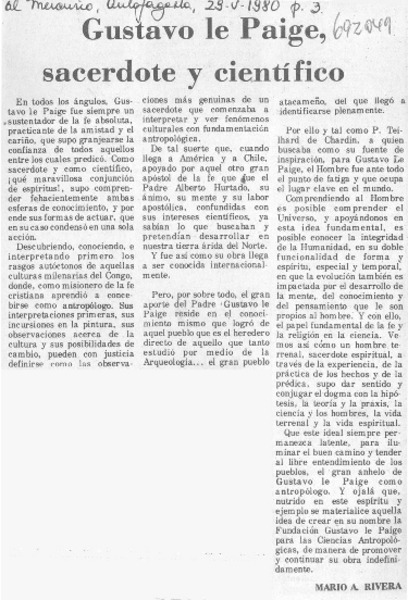 Gustavo Le Paige, sacerdote y científico [artículo] Mario A. Rivera.