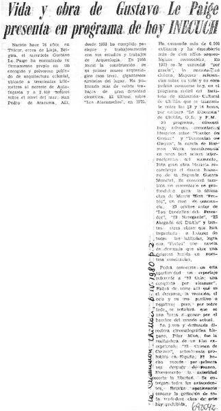 Evocación al Padre Gustavo Le Paige en la catedral. [artículo]