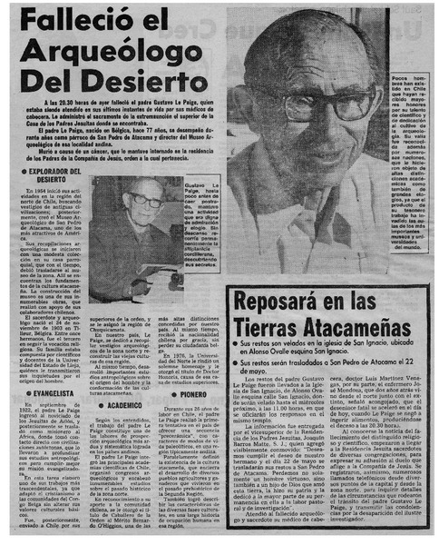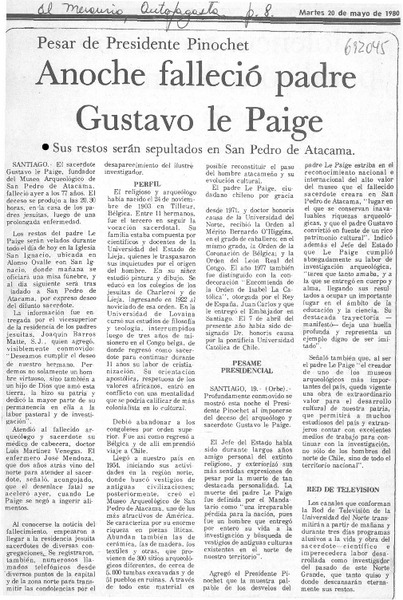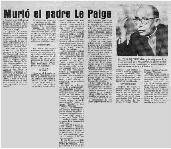 Anoche falleció padre Gustavo Le Paige. [artículo]