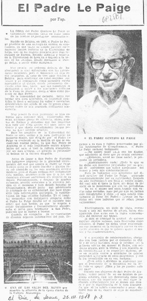 Periódico belga destaca actividades del P. Gustavo Le Paige. [artículo]