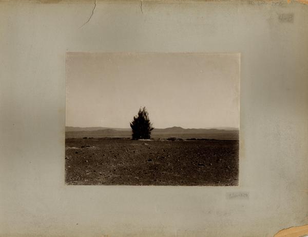 [Locomotora y zona de campamento de oficina salitrera en la pampa] [fotografía].