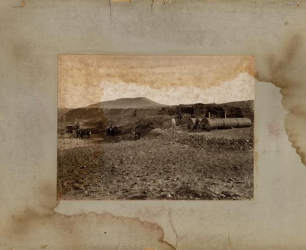 [Trabajos en la línea férrea que transporta el hierro de "El Algarrobo" hasta el puerto de Huasco] [fotografía] Luis Ladrón de Guevara.