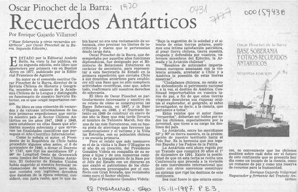 Base soberanía y otros recuerdos antárticos [artículo] Enrique Gajardo Villarroel.